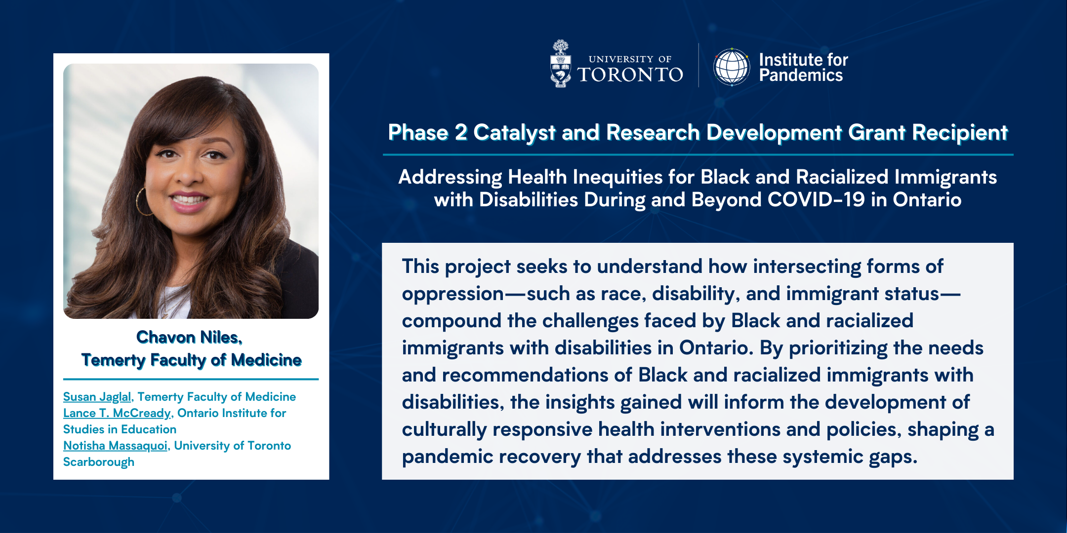 This project pushes beyond traditional definitions of recovery, readiness, and resilience. Recovery must mean more than returning to the pre-pandemic status quo because “normal” was already deeply inequitable. This project ensures that Black and racialized disabled immigrant communities are not erased in post-pandemic reforms. This research helps prepare for future public health crises by ensuring that health equity is a foundational principle in emergency response planning, not an afterthought.